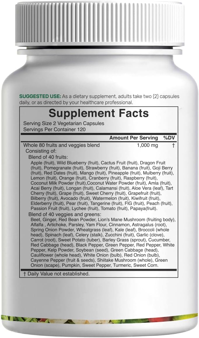 Deal Supplement Fruits & Veggies – 240 Veg Capsules make it easy to stay healthy, energetic, and balanced — every single day.