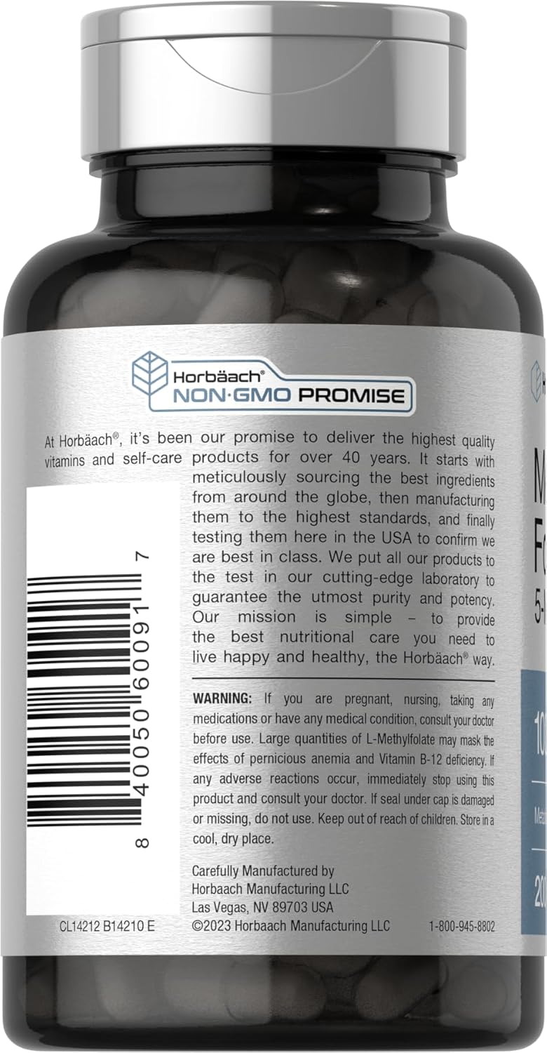 Horbäach Methyl Folate 5-MTHF – 1000 mcg – 200 Capsules