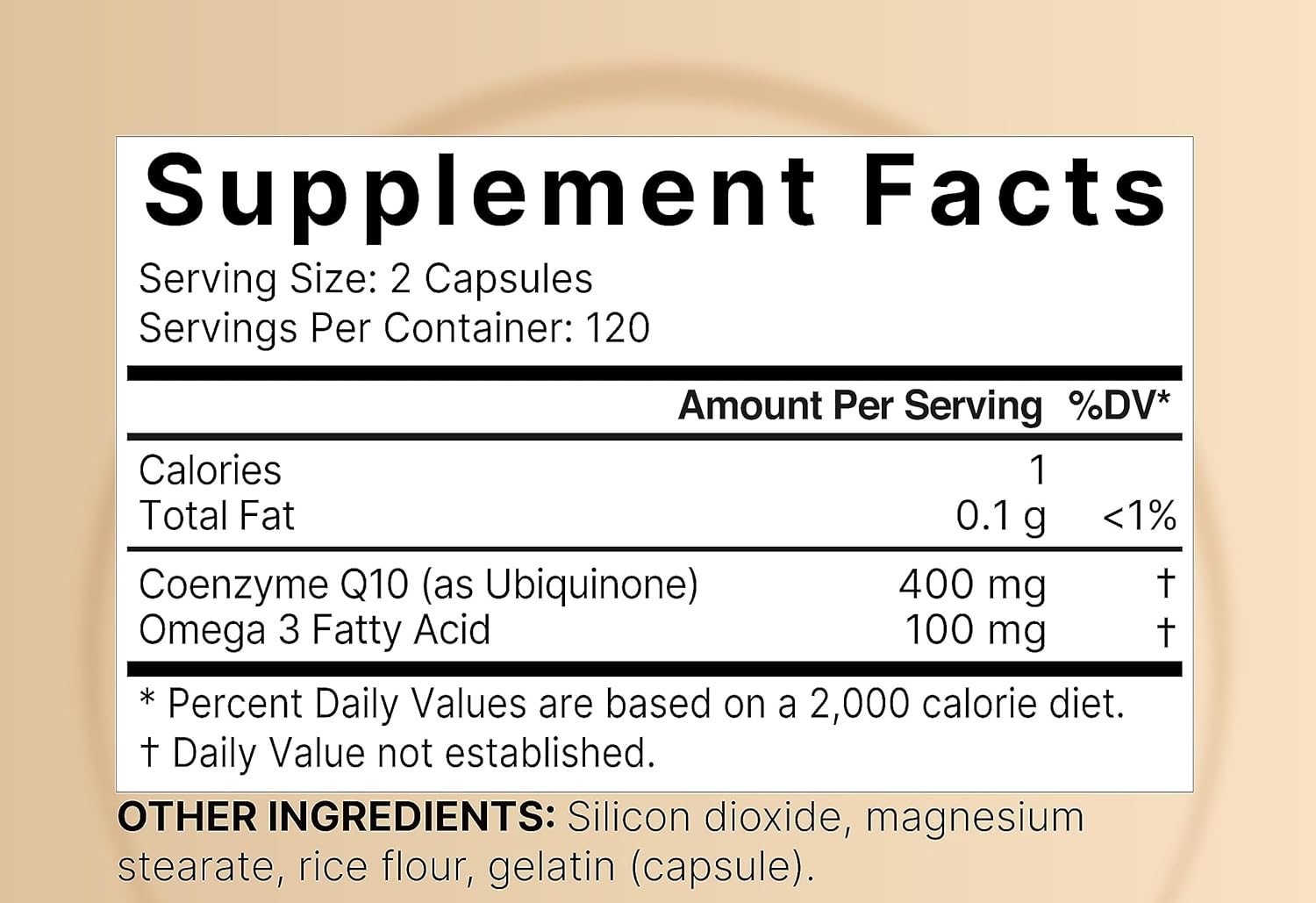- Boosts Energy & Vitality: Coenzyme Q10 plays a vital role in cellular energy production, while Omega-3 fatty acids contribute to overall wellness, promoting optimal energy and vitality*.