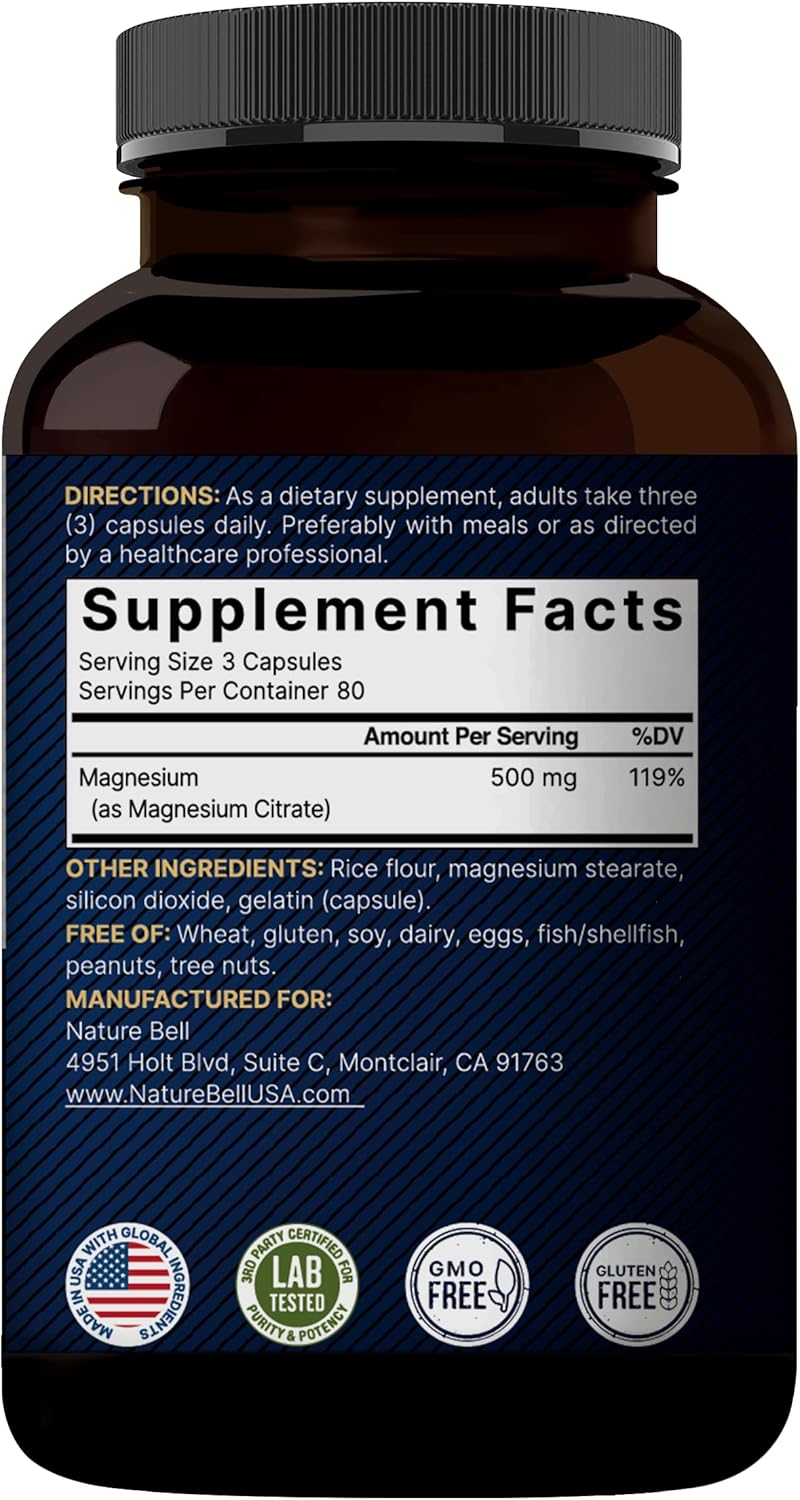 NatureBell Magnesium Citrate - 500mg - 240 Capsules