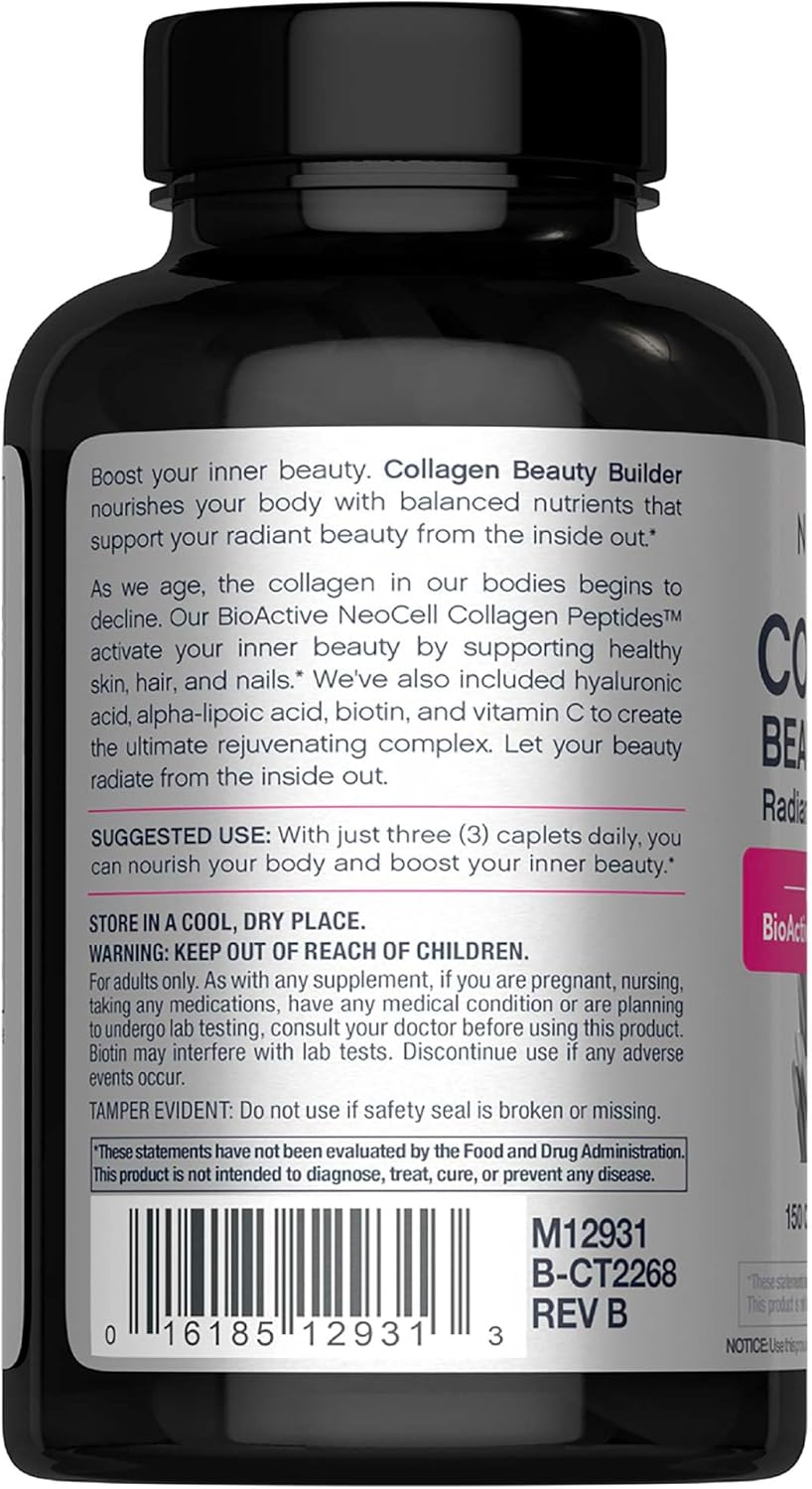 - COLLAGEN PILLS: One 150 count bottle of NeoCell Collagen Beauty Builder Tablets With Hyaluronic Acid and Biotin, a supplement that hydrates, nourishes and protects your cells for healthy skin(1)