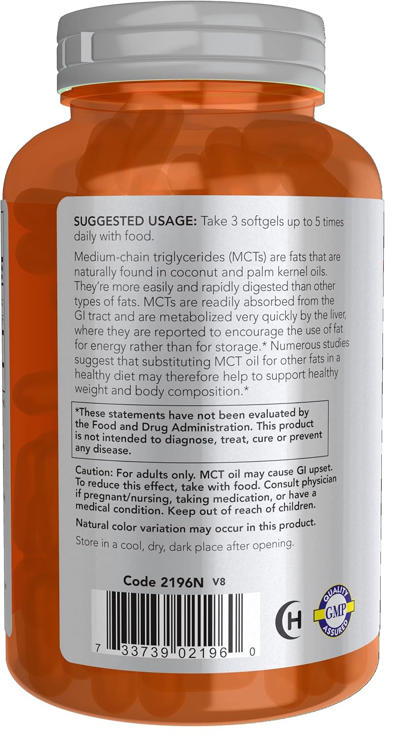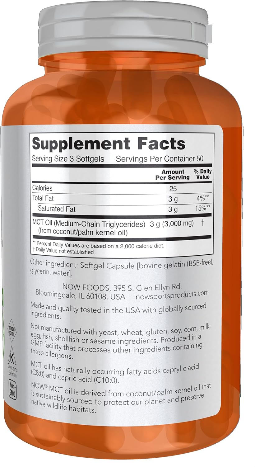 🥥 NOW MCT Oil – 1,000mg – 150 Softgels | Energy, Metabolism & Brain Support