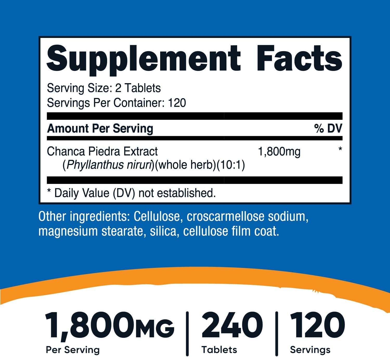 • Chanca Piedra Extract: 1800 mg per serving