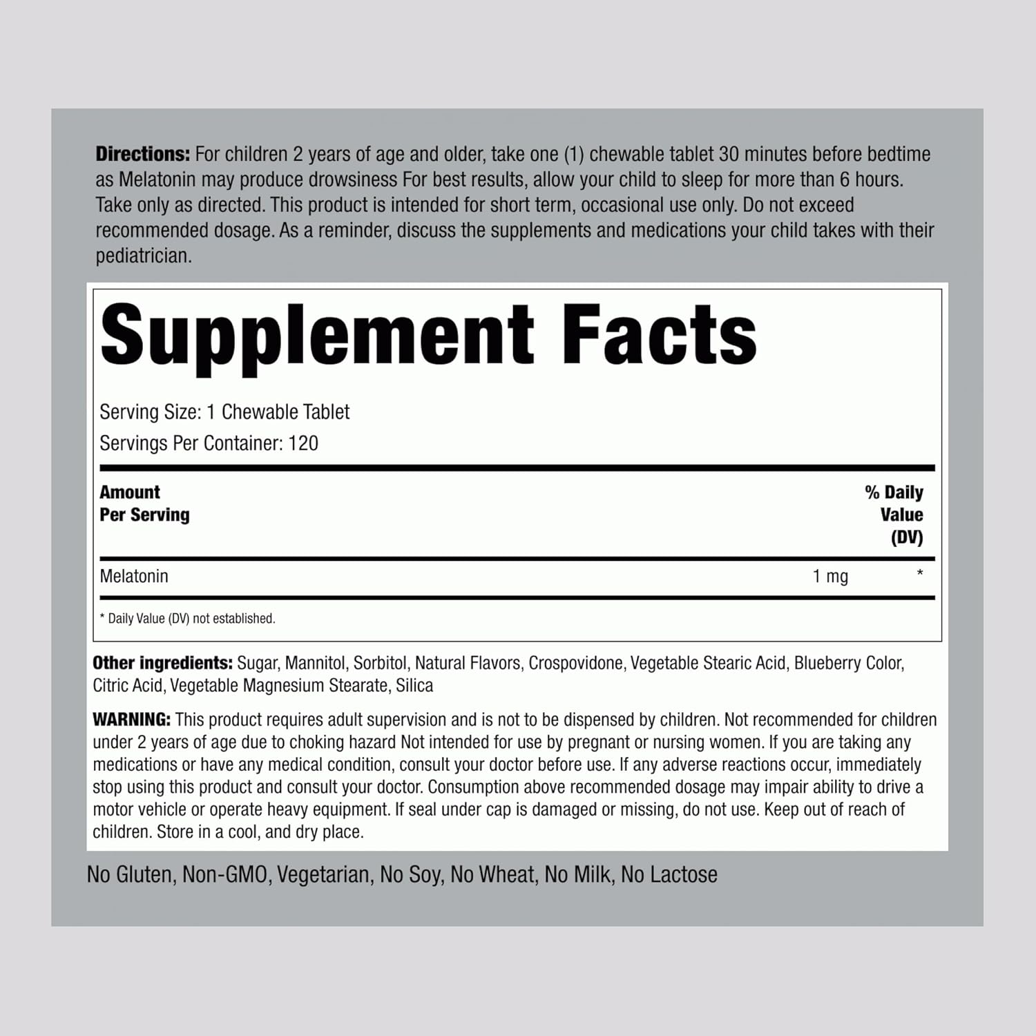 Piping Rock Kid's Melatonin - 1mg - 120 Chewable Tablets