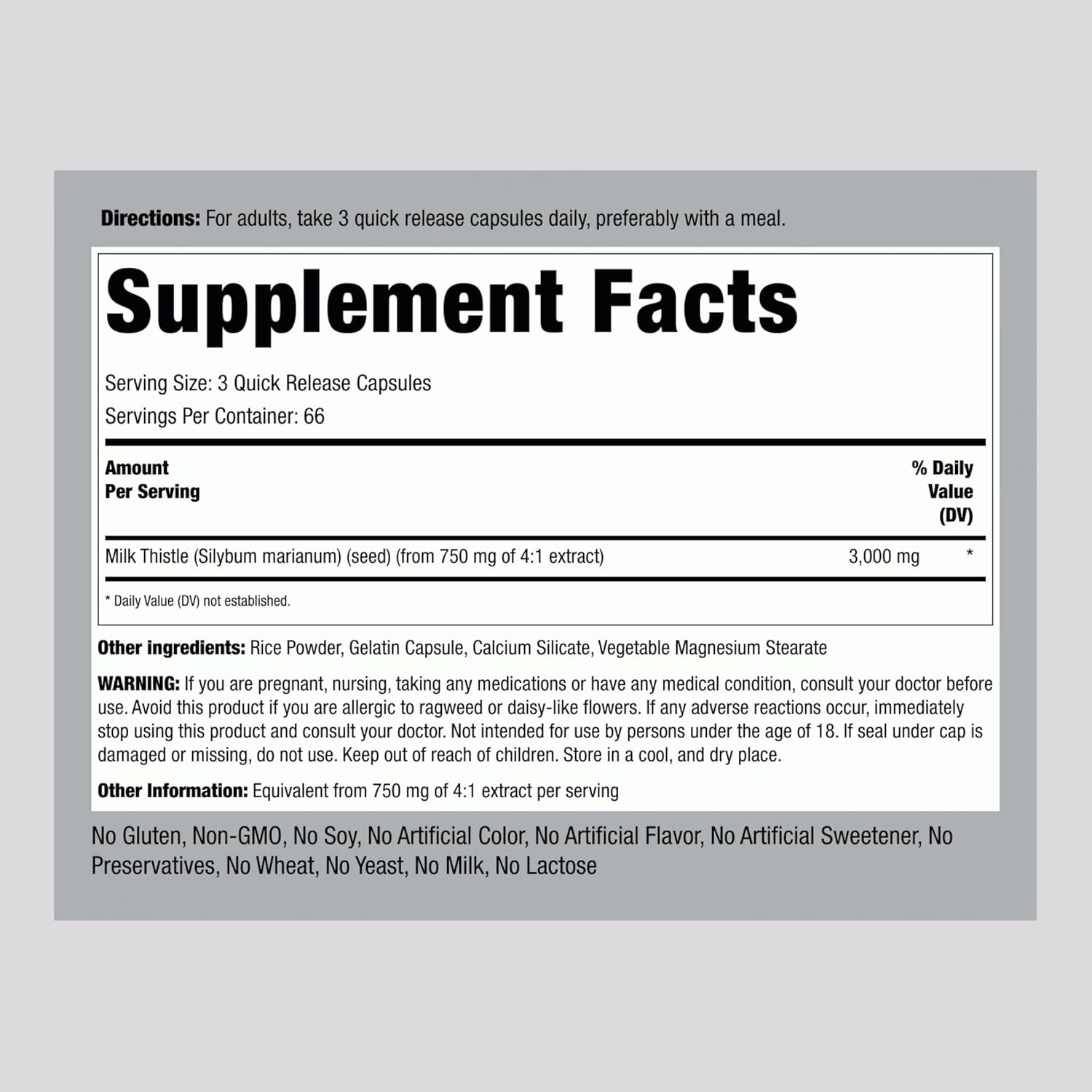 Milk Thistle Seed Extract (Silybum marianum): 3,000 mg (Standardized to 80% Silymarin)