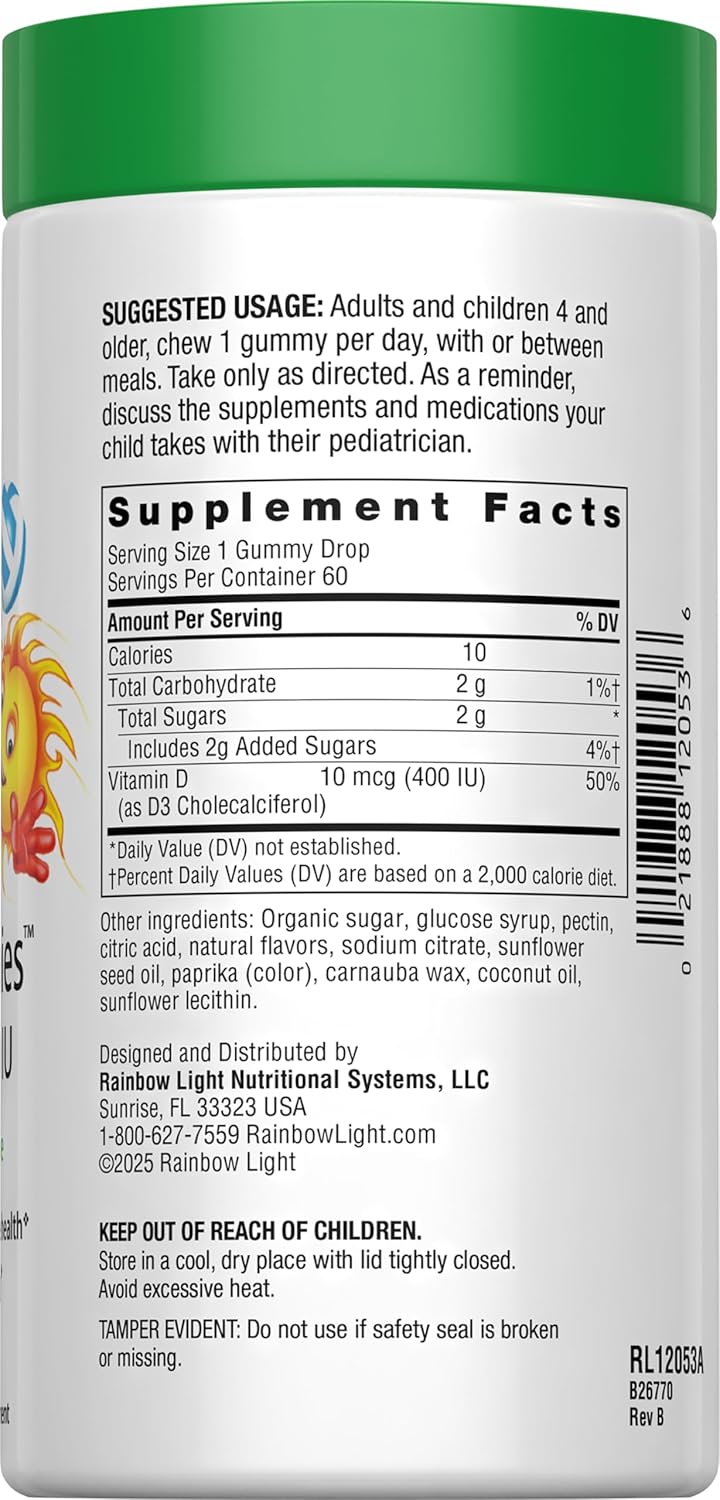 🌞 Rainbow Light Sunny Gummies Vitamin D3 – 400 IU | 60 Gummies