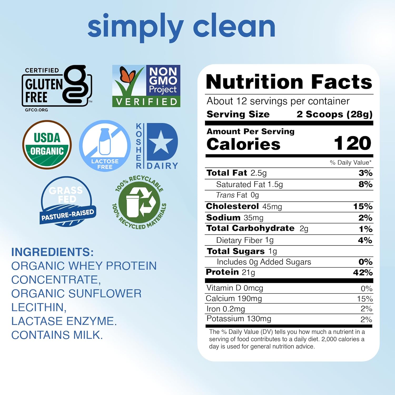 Fuel your body with Simply Tera’s Lactose-Free Organic Whey Protein, made from pasture-raised, organic dairy and crafted for easy digestion.